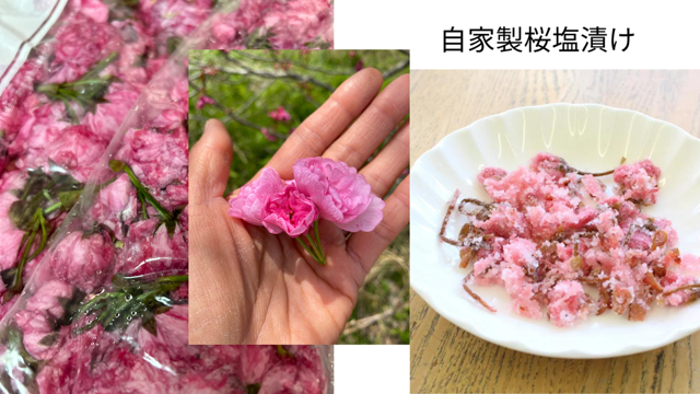 満開の八重桜を自分で摘み、その場で桜塩漬けと桜シロップを仕込みます。